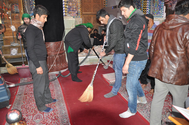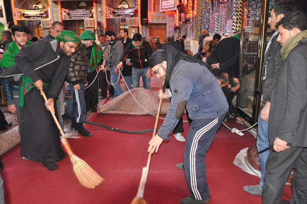 23 جوان شیعه آمریکایی با حضور در حرم مطهر امام حسین (علیه السلام) با جمعی از کارکنان و خدام به غبار روبی صحن مطهر اقدام نمودند.